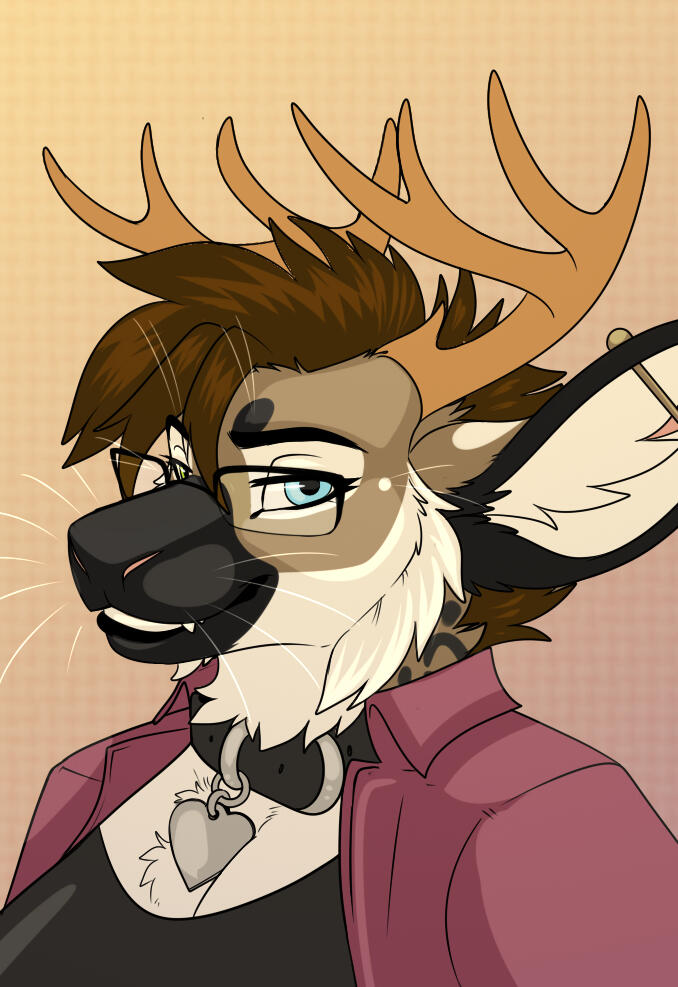 Created in 2009She did not originally have the black muzzle, tips of her front paws, or back toes. These were added later as "ink stains".Her tail also use to be long and luxurious from the snow leopard part of her mixture however was docked as it became a constant tripping hazard, and then once again dipped in ink to give that beautiful paint brush tip look.Jalmu has always been genderfluid. Antlers where always there, the large 'dumbo' deer ears results from the mix from german shepherd, maned wolf and the mule deer.The nice auburn mane another trait being used from the maned wolf.